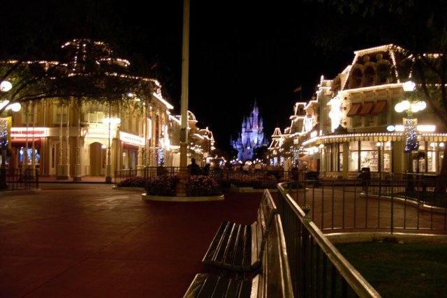 Main Street during one of the E-Ride nights. (now called extra magic hours)